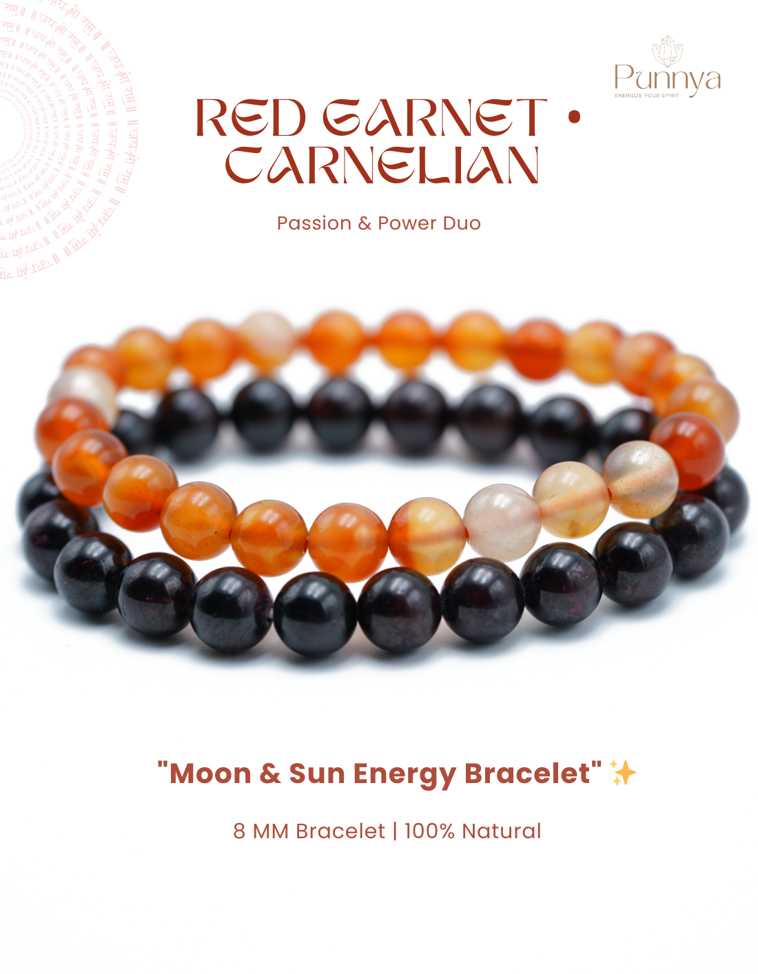 Together, Red Garnet and Carnelian form a fiery duo that awakens passion, creativity, and determination. This powerful combo supports motivation, strengthens relationships, and brings the energy you need to chase your goals with confidence.