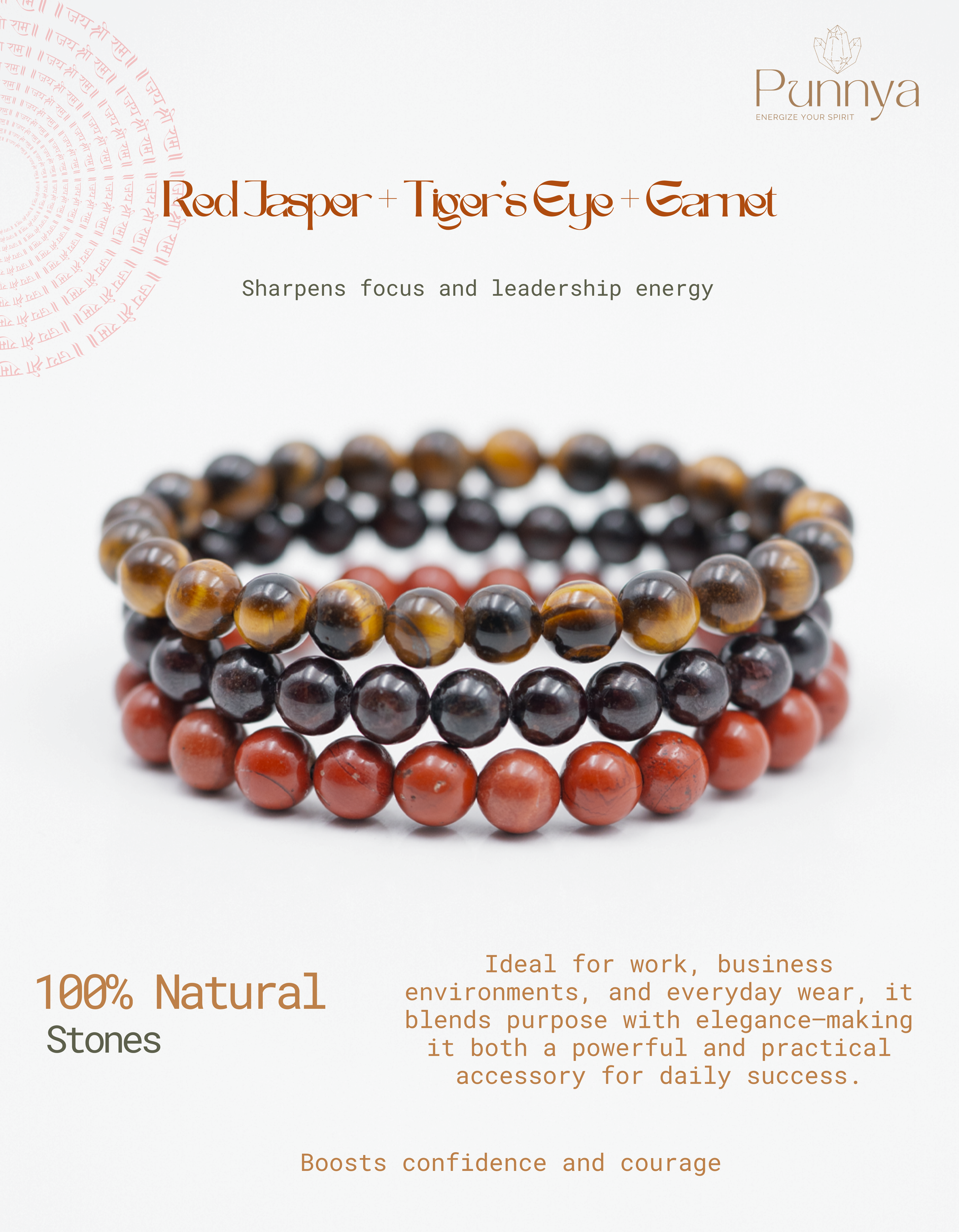 Ultimate Aries Power Combo | Carnelian + Red Jasper + Tiger’s Eye + GarnetComplete energy support for Aries - Confidence, grounding, focus, and passion combined Best choice for those who prefer wearing multiple bracelets for maximum effect